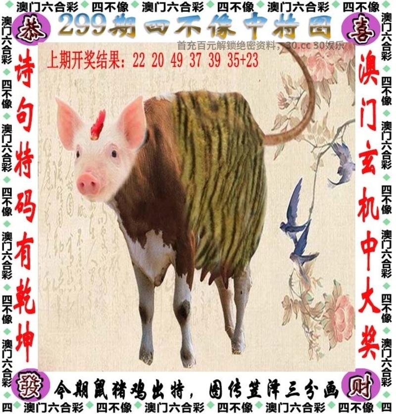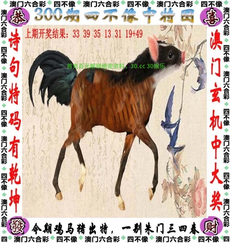 300期:今期鸡马猪出特,一别朱门三四春开:虎40准